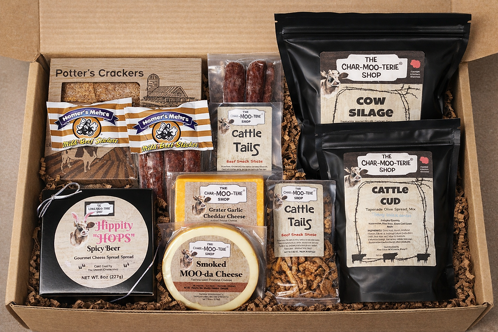 We are home to the Char-MOO-terie(R) Gifts . Doing Charcuterie the WISCONSIN WAY Using Cheese and All Beef Sausage. We are super excited for this new line of Gifts.